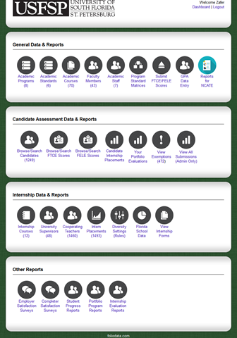 A new tool has been developed for collecting, analyzing student assessment data all in one database. FolioData allows individual candidates to create their own e-portfolio accessible form the web. The system also allows the candidates to upload their assignments in order to document their competence in each of the Florida Educator Accomplished Practices (FEAP), as well as English for Speakers of Other Languages (ESOL) and enables the course instructors to perform evaluations. The assessment tools are used to collect and analyze candidate portfolios, test scores, and field placement data. They collect professional behavior assessment evaluations and Internship evaluations completed by university supervisors and co-operating teachers.